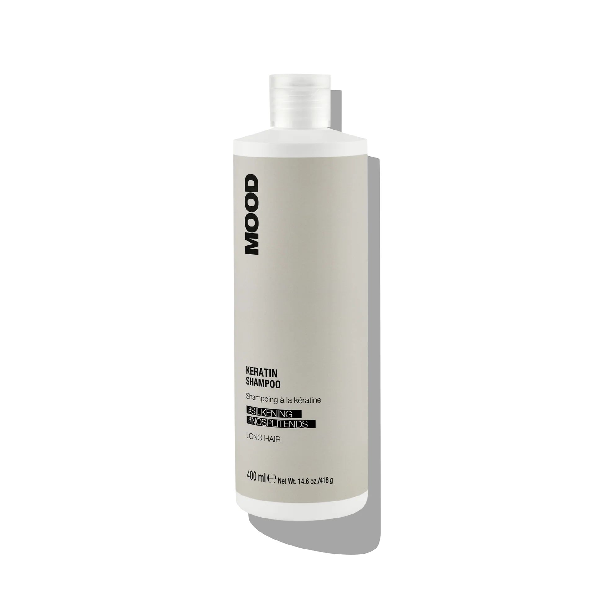 NAUDOJIMAS: nedidelį kiekį tepkite ant drėgnų plaukų, išmasažuokite ir išskalaukite. Jei reikia, pakartokite. Po to naudokite MOOD KERATING LONG HAIR plaukų kaukę.